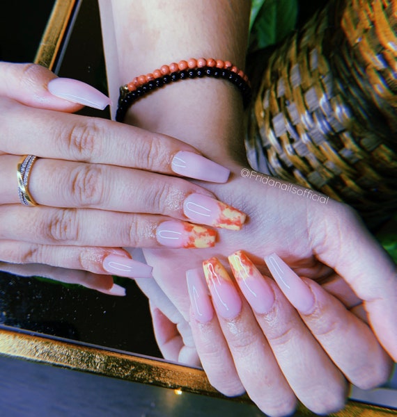 Cute Pink Tie Dye Nails Press On Nails Coffin Nails Etsy